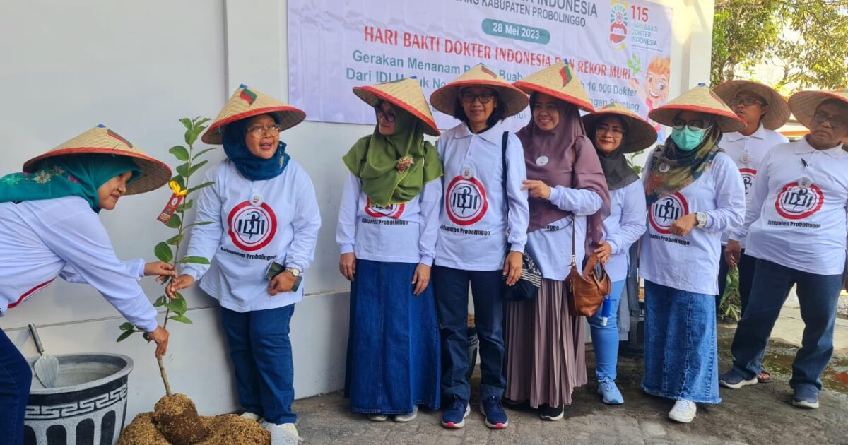kliksurabaya.co.id-Dalam rangka memperingati Hari Bakti Dokter Indonesia (HBDI) ke-115, Ikatan Dokter Indonesia (IDI) Cabang Kabupaten Probolinggo menggalakkan gerakan penanaman pohon buah-buahan di semua pelayanan kesehatan se-Kabupaten Probolinggo, baik rumah sakit, puskesmas dan klinik, Minggu (28/5/2023).