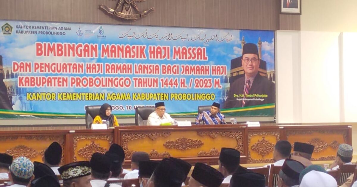 kliksurabaya.co.id-Sebanyak 787 orang Calon Jamaah Haji (CJH) Kabupaten Probolinggo mengikuti penutupan bimbingan manasik haji massal dan penguatan haji ramah lansia serta tasyakuran pemberangkatan CJH di Auditorium Madakaripura Kantor Bupati Probolinggo, Sabtu (10/6/2023).